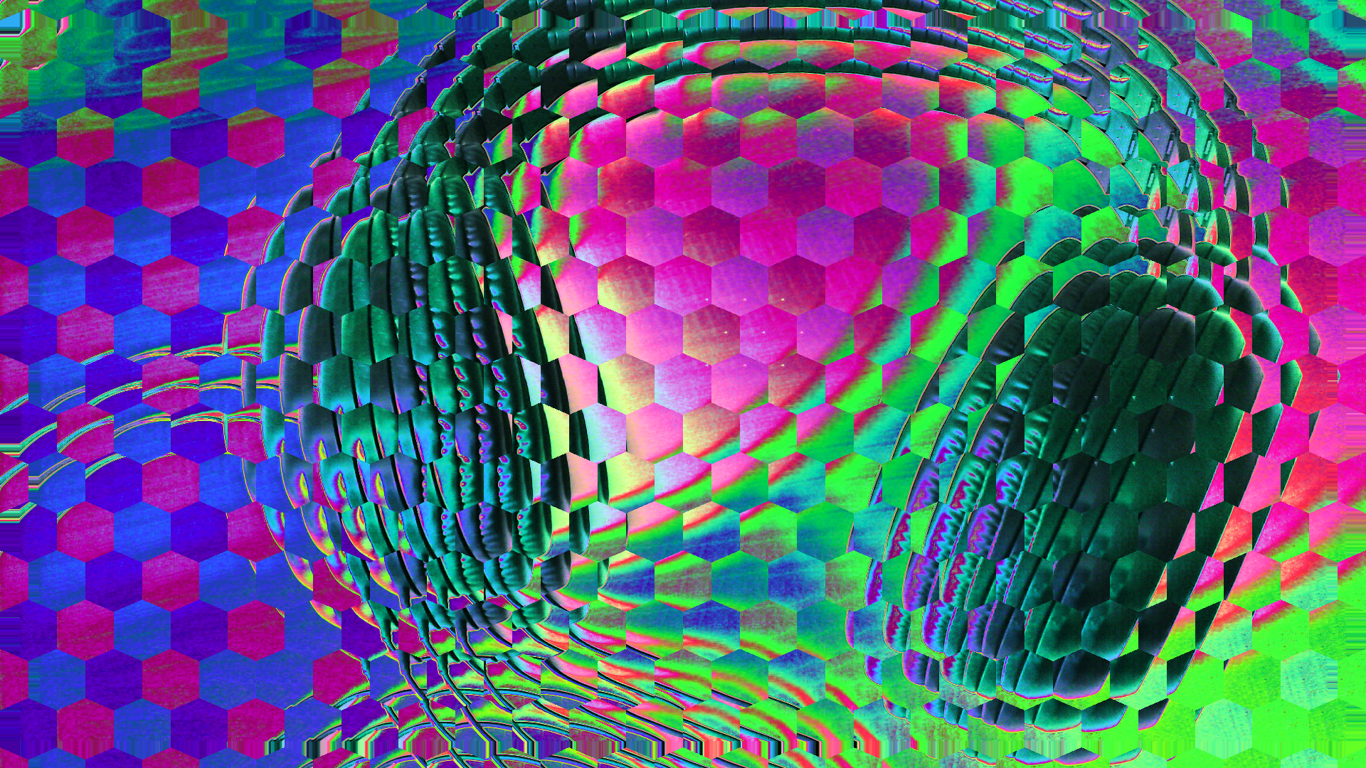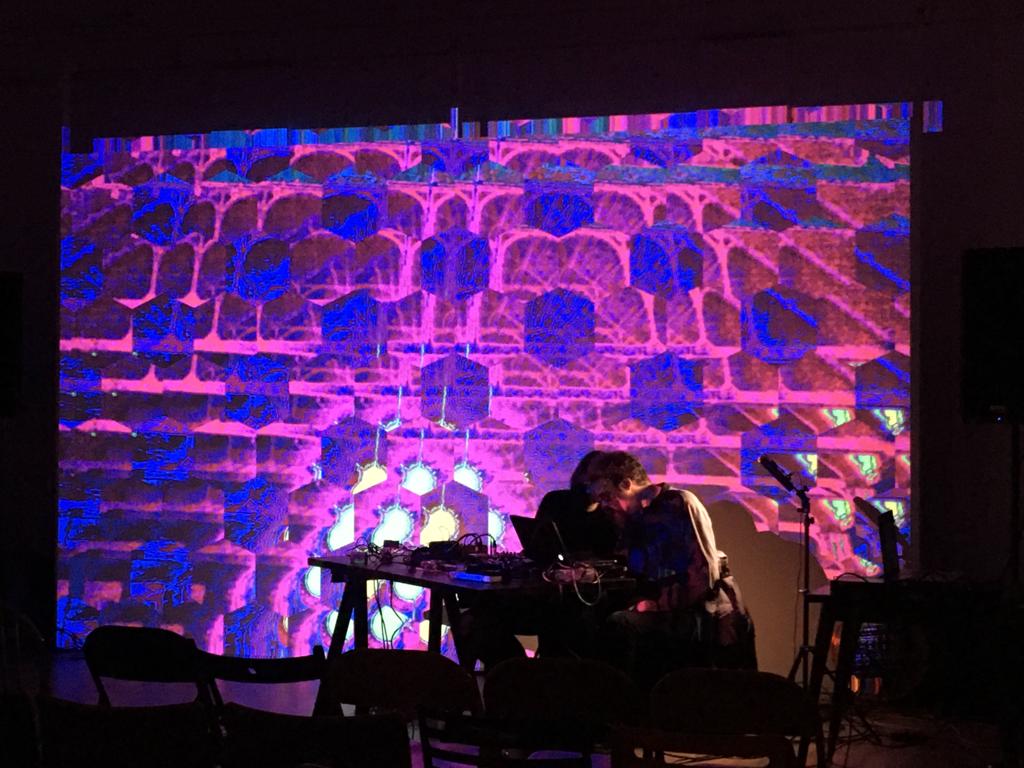 Ommatidia live av fly vision Algorithmus basiert auf den Augen von Fliegen. Ommatidien sind winzige unabhängige Fotorezeptoreinheiten, die aus Hornhaut, Linse und Fotorezeptorzellen bestehen. Ommatidia live av funktioniert über einen Visualisierungscode, der ein Bild von einer Einzellinsen-Webcam aufnimmt und verarbeitet, um die Ommatidien nachzubilden. In einem hexagonalen Gitter angeordnet, das eine optimale, durch die Evolution erreichte Anordnung darstellt, hat jede Zelle einen Weitwinkel mit überlappenden Rändern, die Teile des Bildes wiederholen und die Dramatik sich bewegender Objekte verstärken. Die Farbe der Zellen wird je nach den Lautstärkepegeln von drei Audio-Frequenzbändern (Bässe, Mitten, Höhen) verändert. Im Laufe der Zeit wird die Größe der Zellen moduliert und gezoomt. Das ästhetische Ergebnis ist eine av-Performance, die psychedelische Züge aufweist und Klänge von experimentellen Open-Source- und handgemachten Synthesizern verwendet. Es ist ein elektronisches Mantra, das visuell und akustisch wiederholt wird.